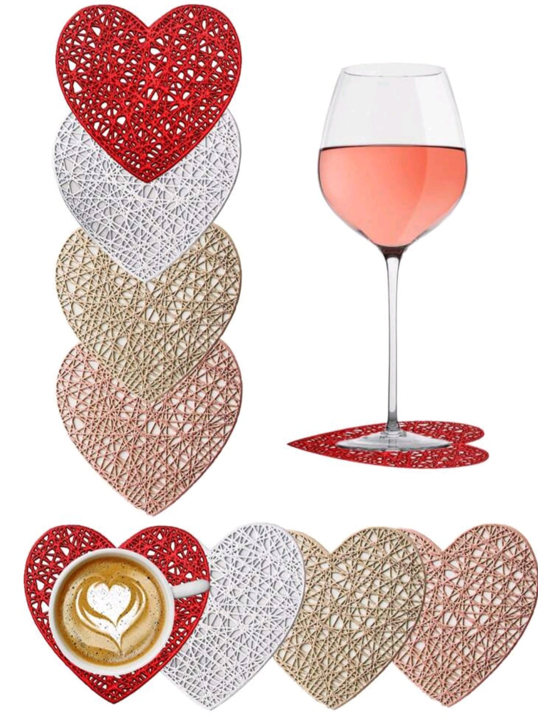 Looking for a way to add more coziness and charm to your table? These shiny heart-shaped coasters will become a table accent for both everyday and festive occasions! The set includes 6 pieces , so you can place them under a glass, cup or mug - the table will look neat and stylish.