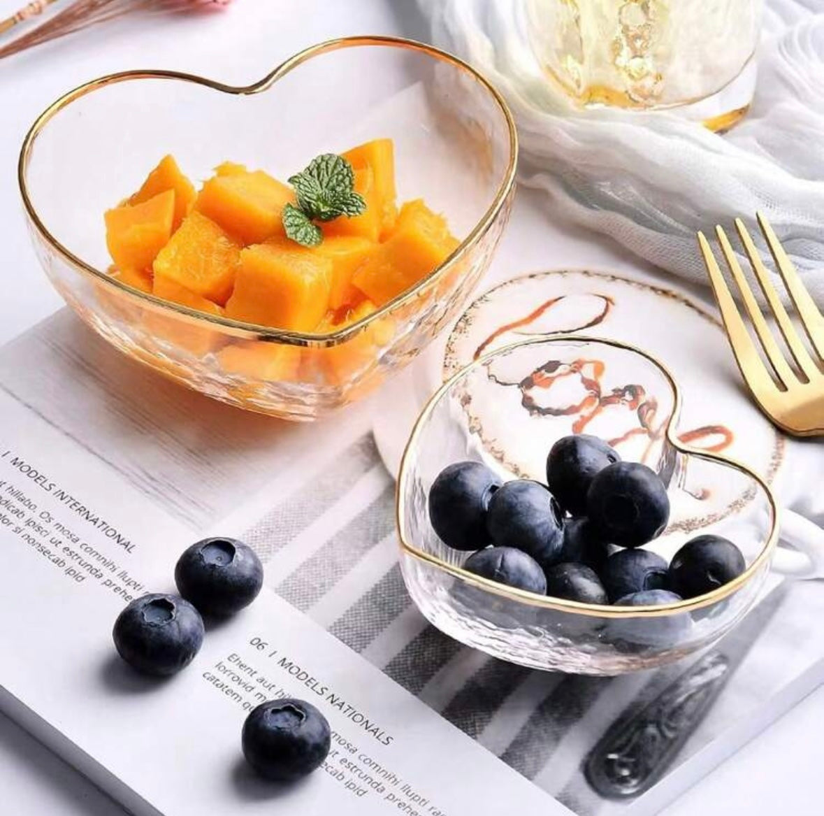 Looking for an elegant and unique accent to your table decor? These heart-shaped glass bowls are a subtle luxury and romance all in one. Perfect for serving snacks, desserts, salads or fruit.