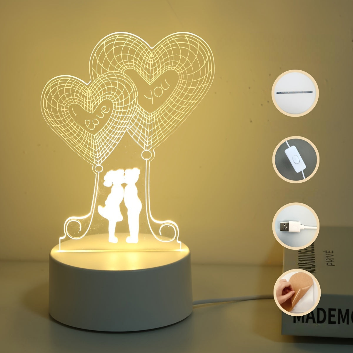 This uniquely designed 3D LED night light with a heart balloon shape and "I Love You" silhouette adds coziness, romance and soft light to your environment. Perfect for gifts and romantic interiors.