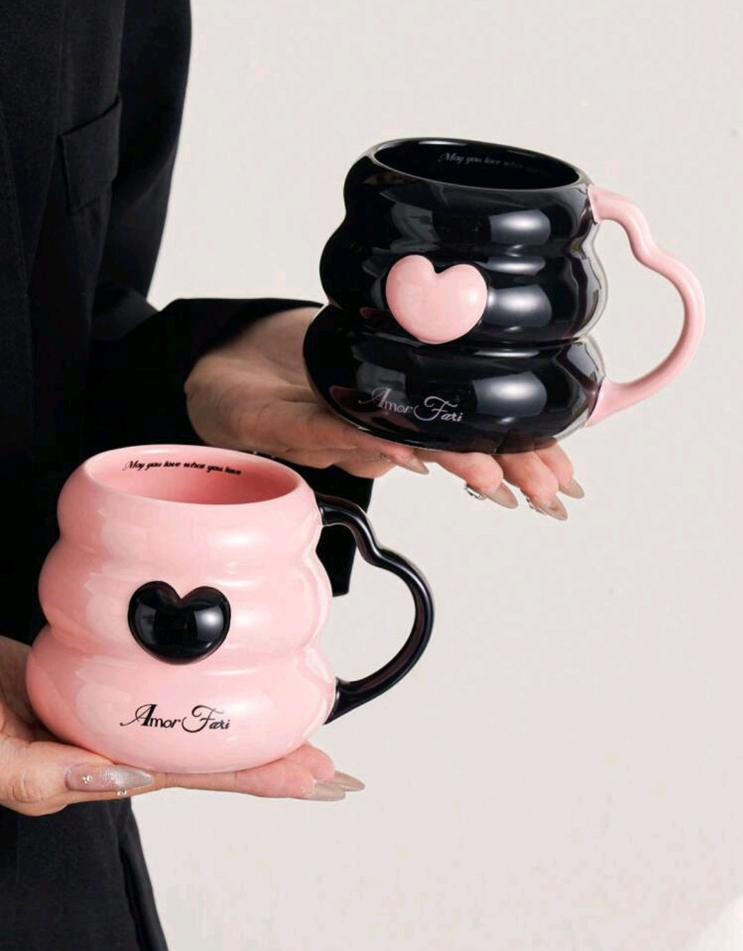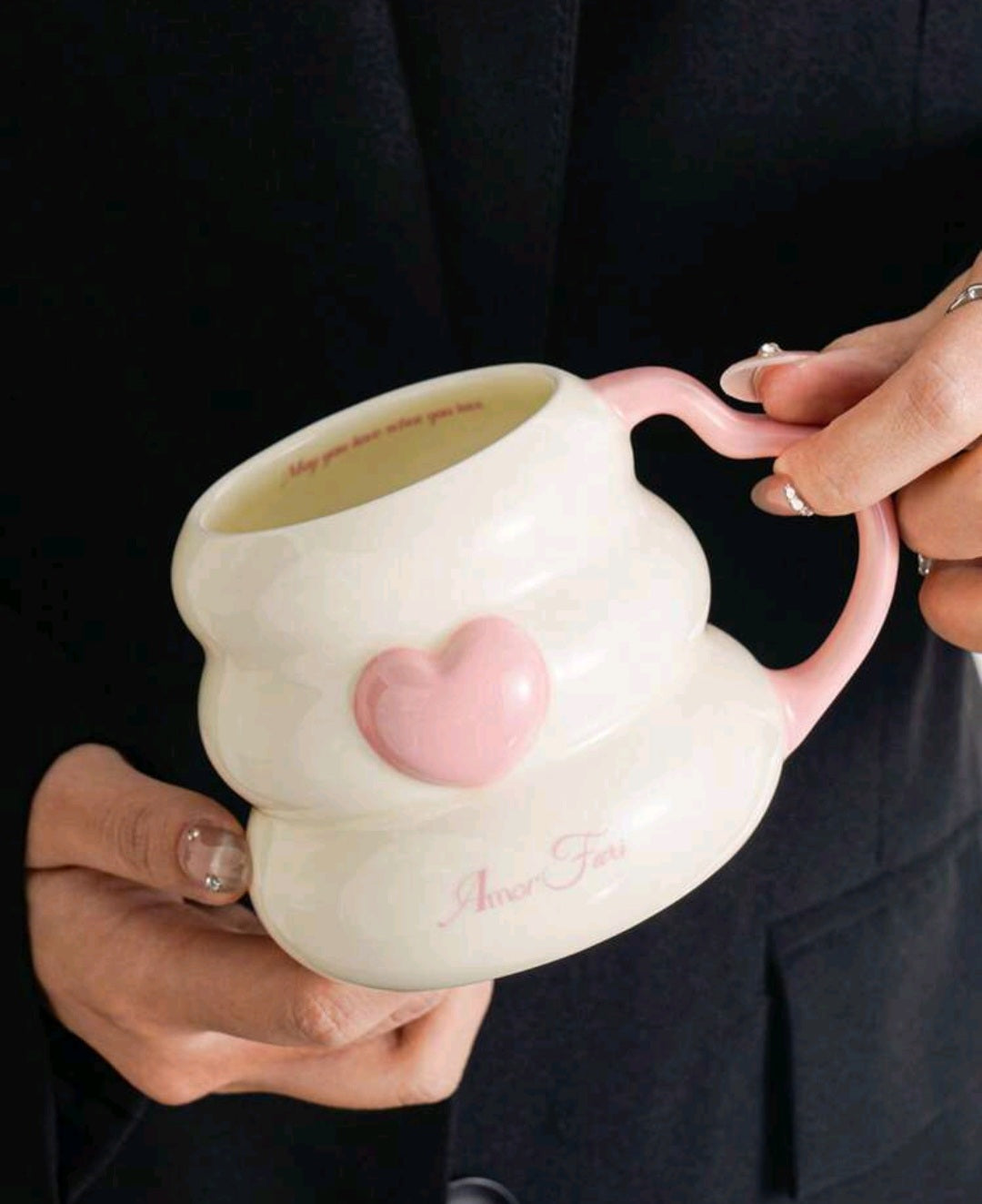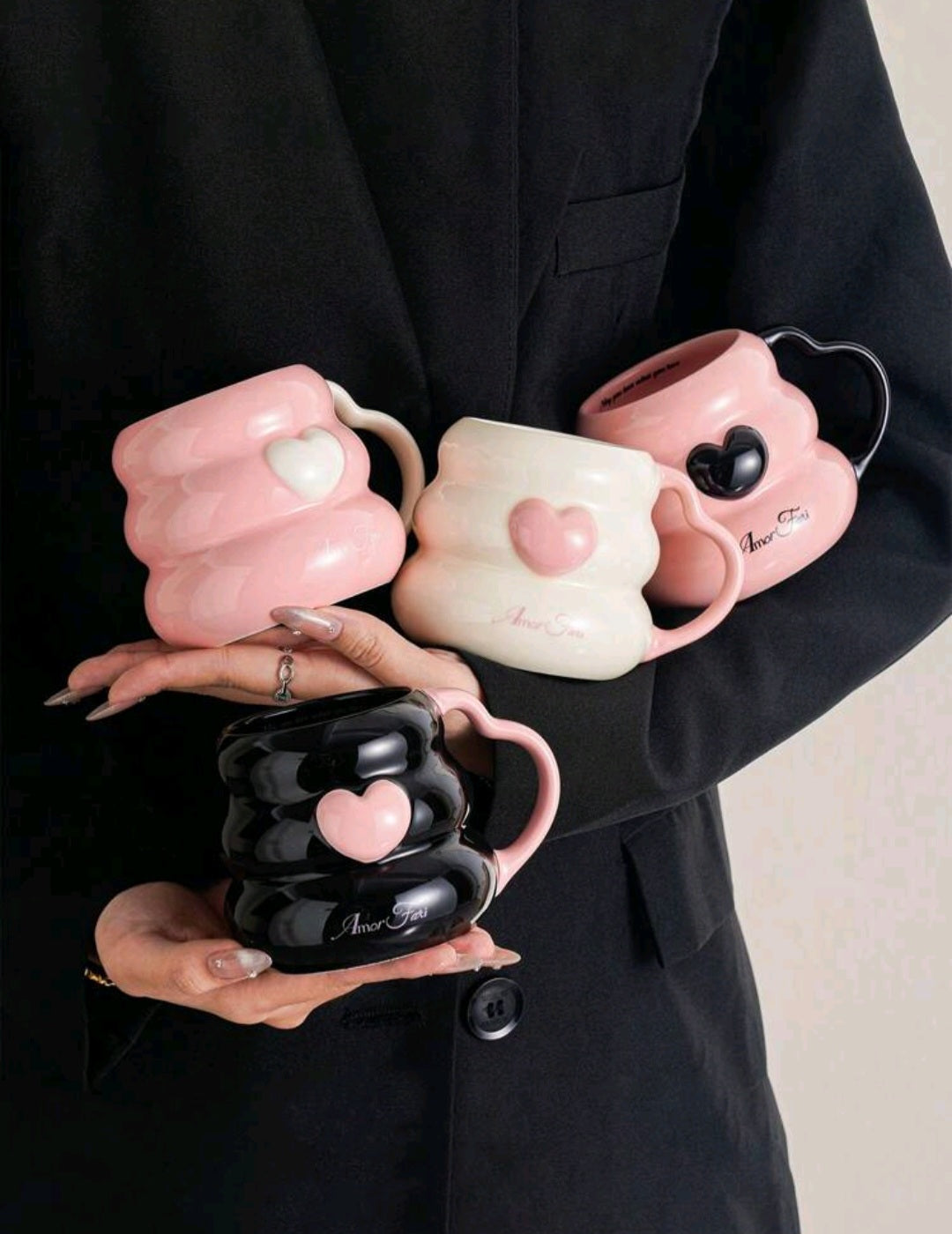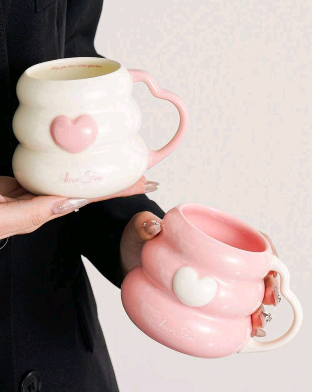 Discover mugs that create a mood every morning! These exclusive mugs, decorated with hearts and love notes , stand out with their widening shape and heart-shaped handle 🤍 - every detail here is created for your cozy moments.