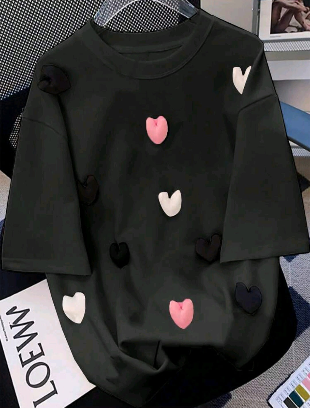 - The T-shirt is decorated with 3D heart appliqués - an exclusive detail that symbolizes a small moment of love that will accompany you every day.