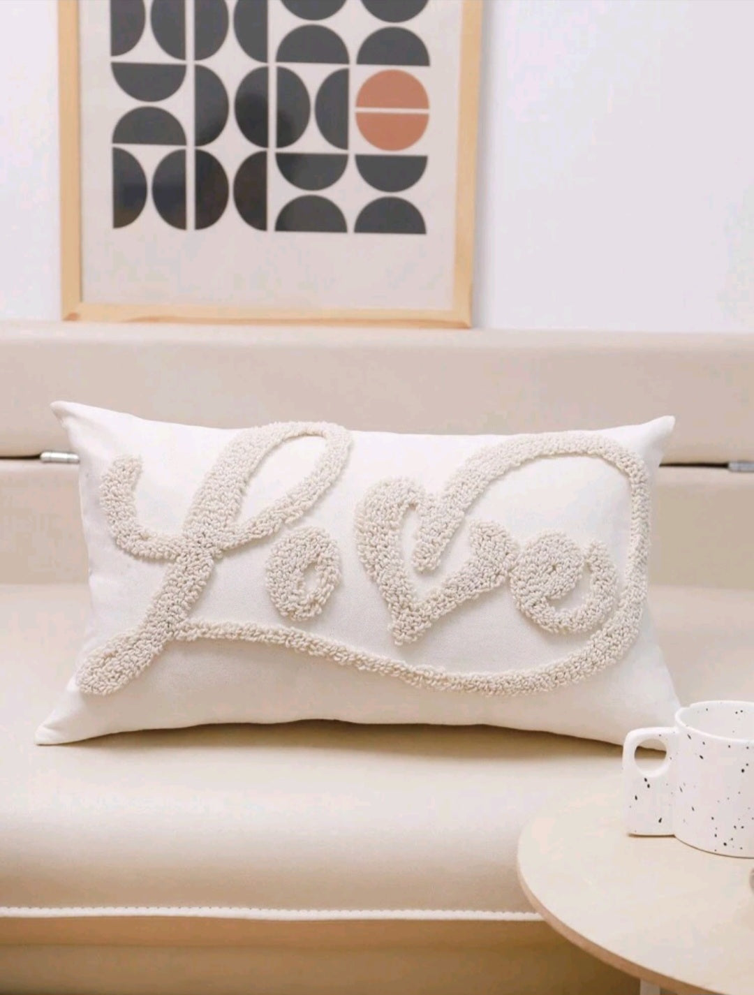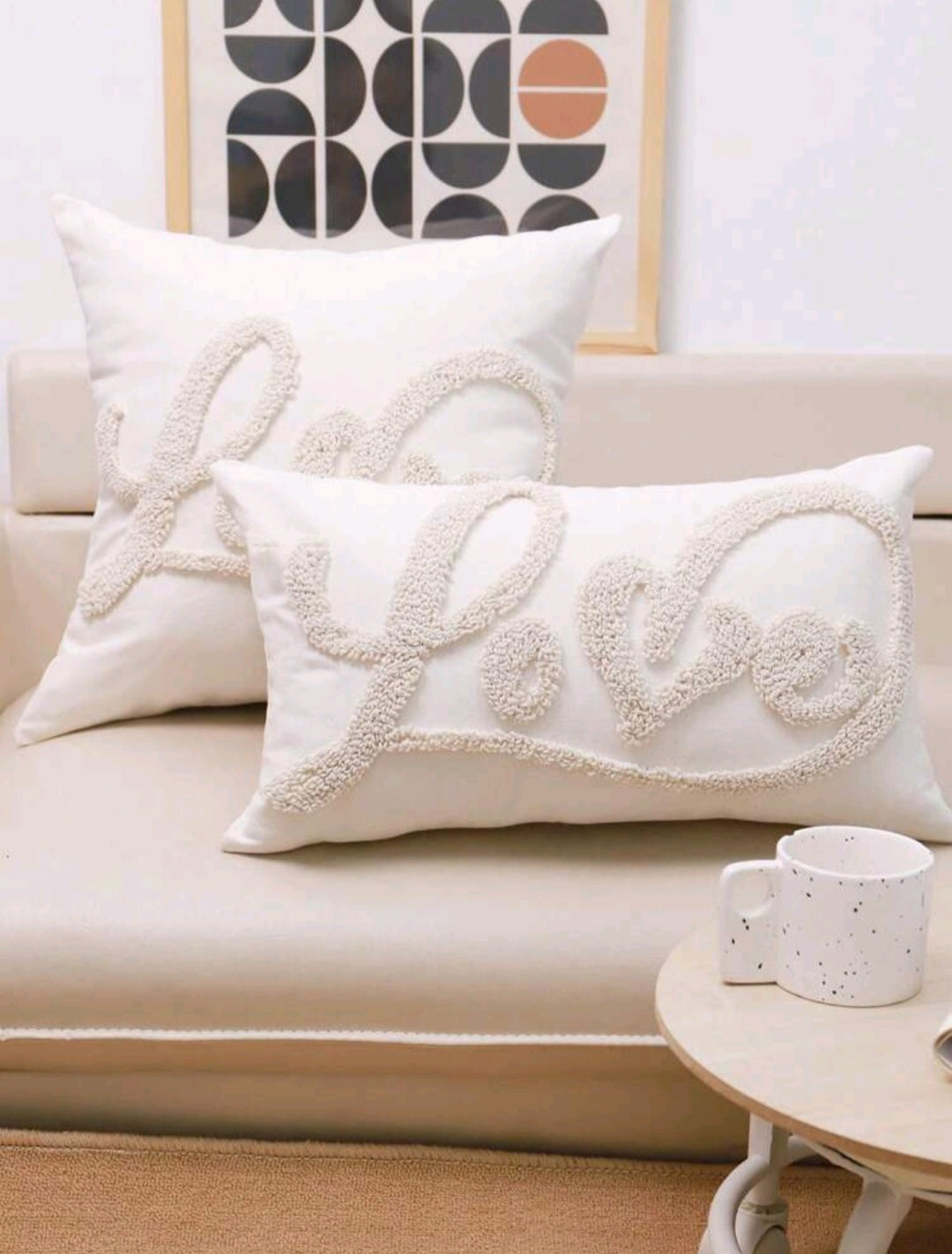 These cream-colored cushion covers with an embroidered inscription "LOVE" are simply irreplaceable when you want to bring warmth and love into your home . Instead of the letter "V" - a charming heart , which gives this accessory a unique, romantic charm. 💕