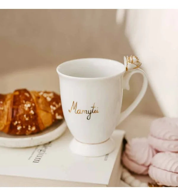Ieškote ypatingos dovanos savo mamai, kuri išreikštų jūsų meilę ir dėkingumą? Rankų darbo porcelianinis puodelis „MAMYTEI“ su auksu dekoruota gėle yra puikus pasirinkimas mamos dienos proga. Šis prabangus puodelis ne tik puoš jūsų mamos rytinę kavą ar arbatą, bet ir taps nepamirštamu prisiminimu apie jus.