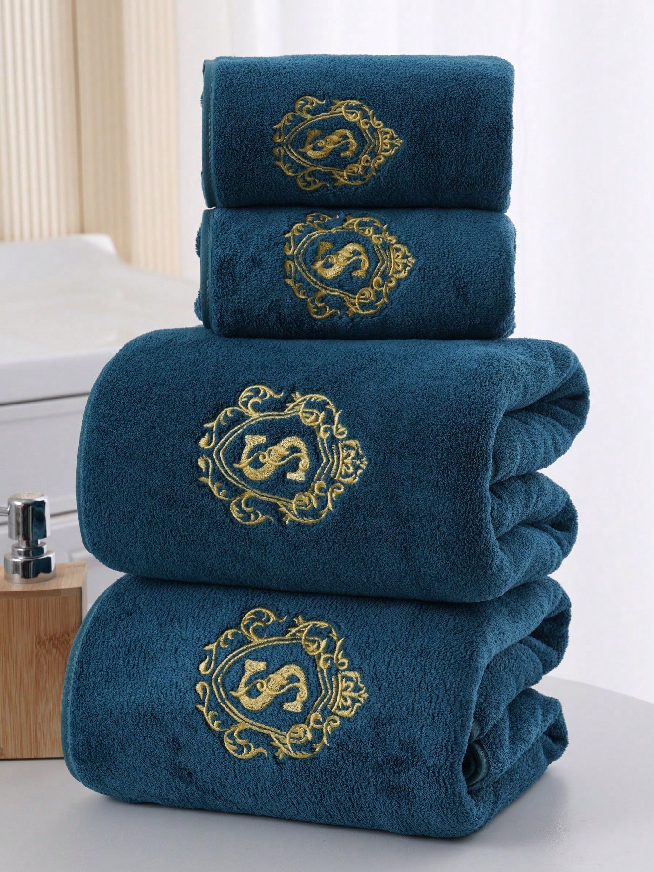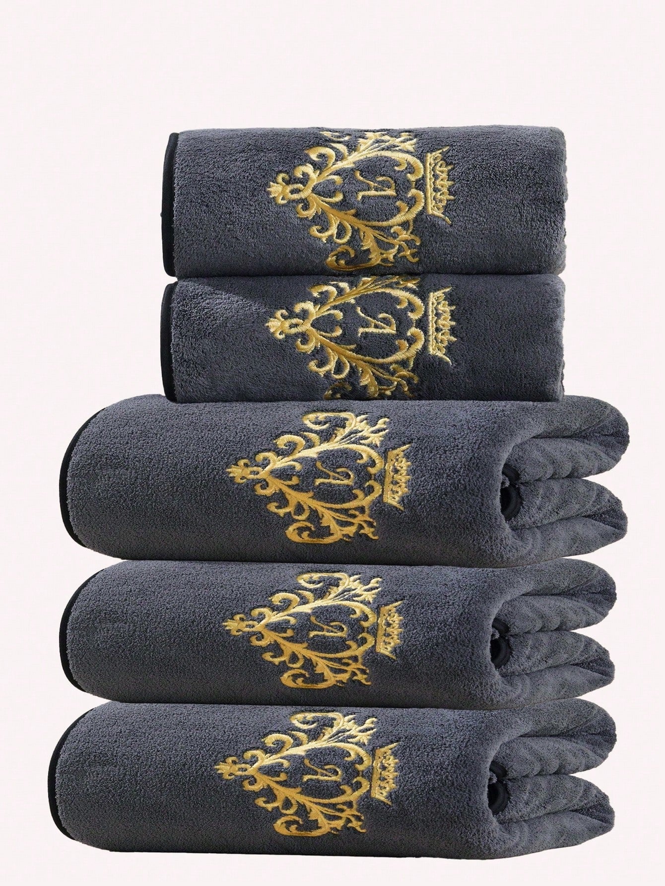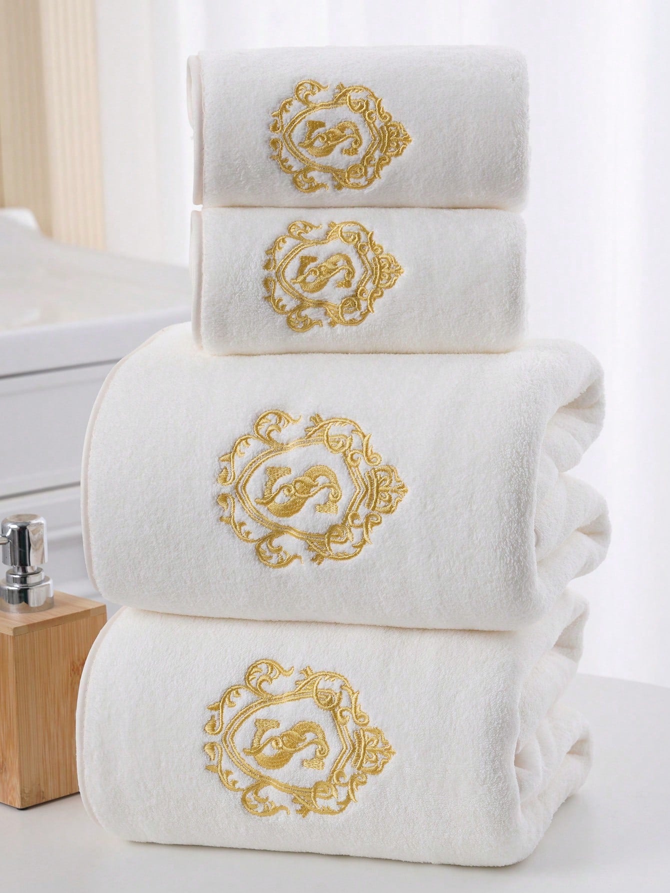 Looking for elegance in your bathroom? These luxurious towel sets with delicate gold monogram-style embroidery are a great choice for those who appreciate exclusivity. These towels are not only stylish, but also extremely functional - soft, fluffy and perfectly absorbent.