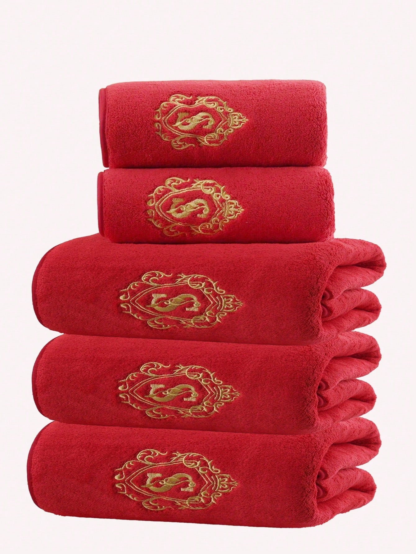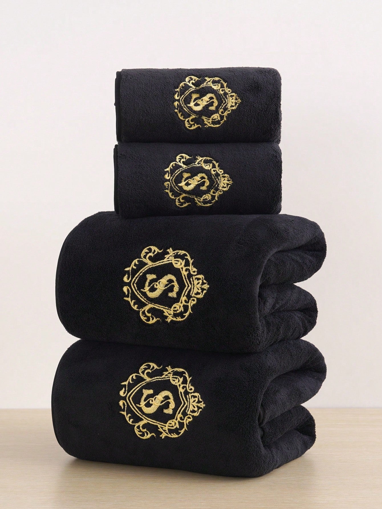 Luxurious towel set with gold monogram embroidery