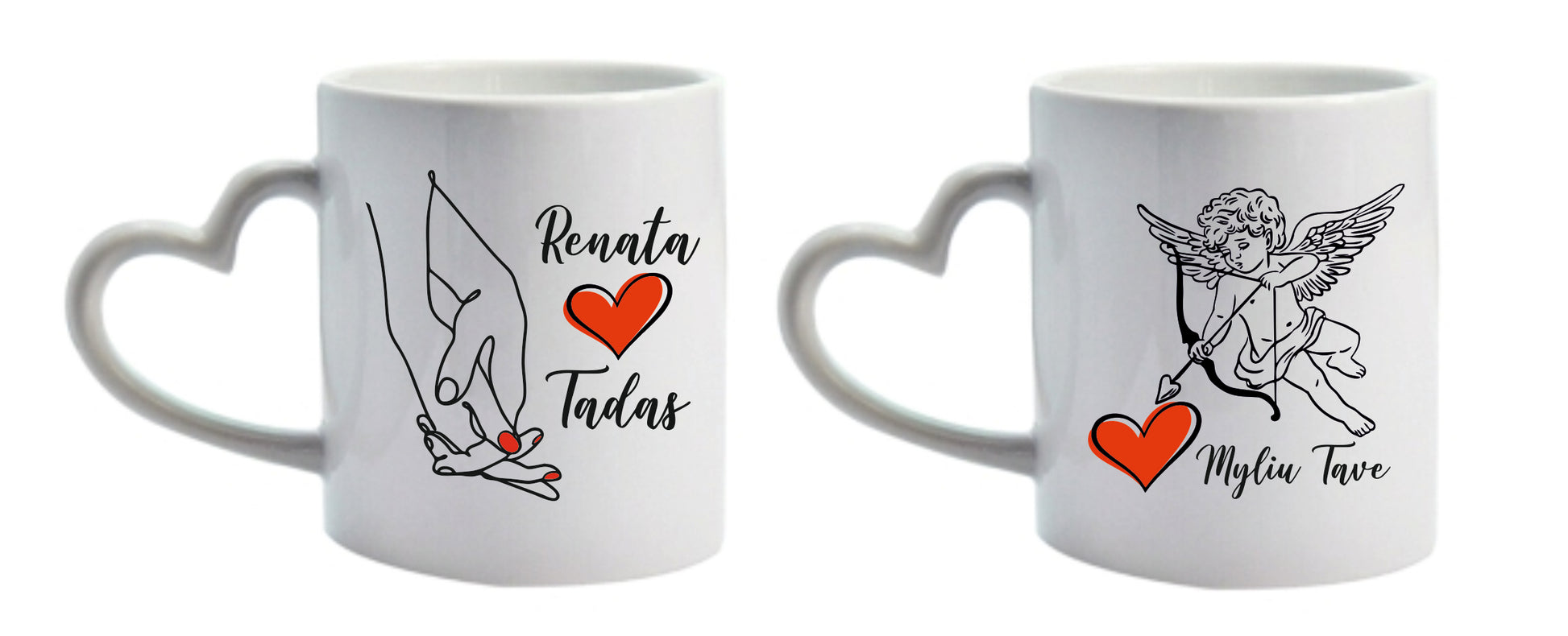 Šį puodelį gali personalizuoti – įrašyti norimus vardus, todėl jis tampa unikalia dovana porai, vestuvėms, metinėms ar Valentino dienai.