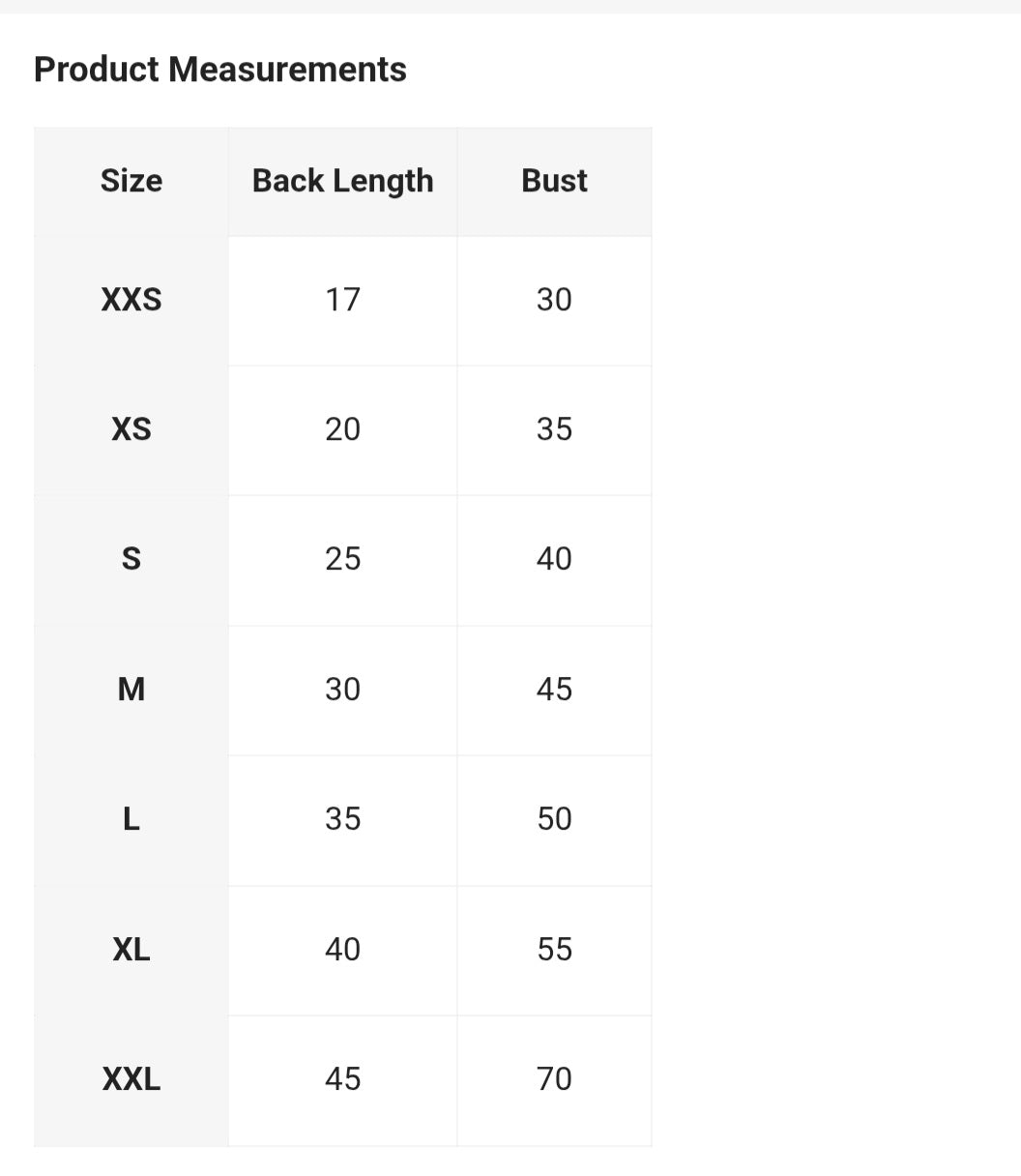 Sizes: XXS, XS, S, M, L, XL, XXL (recommended for small and medium breed dogs)