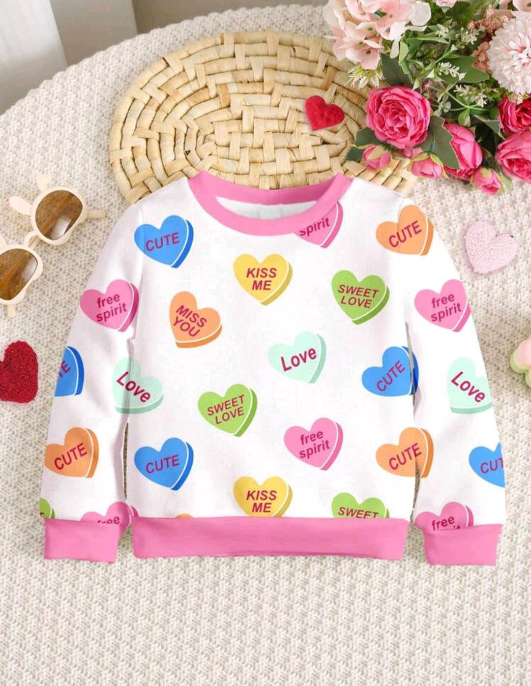 Playful girls' sweater with hearts and cute inscriptions (6 months - 3 years) 💖