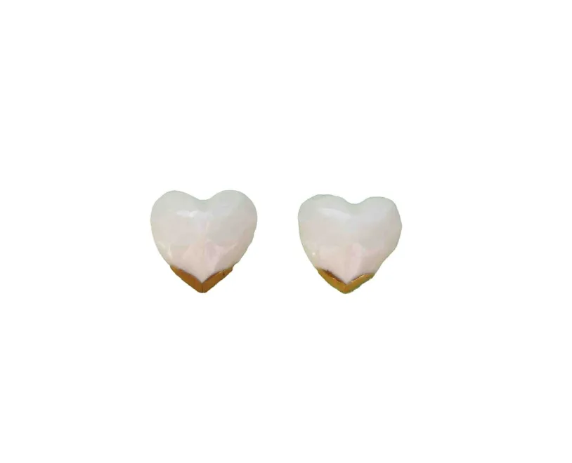 Balti porcelianiniai auskarai širdelės – originalus ir elegantiškas papuošalas. Ryškūs, minimalistiniai, subtiliai dekoruoti auksu.