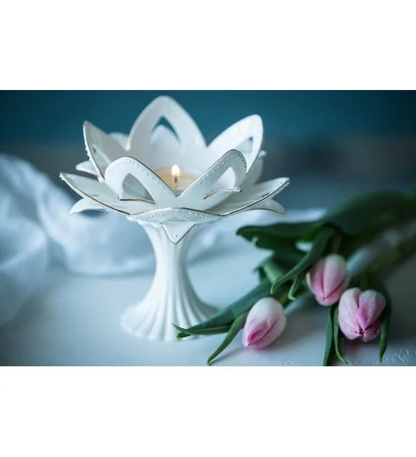 Lelija simbolizuoja meilę ir rūpestį, tad šis židinys jaunųjų namuose suteiks ne tik jaukumą, bet ir turės simbolinę prasmę. Šeimos židinys iš porceliano yra unikalus, pjaustomas rankomis, tad realybėje gali šiek tiek skirtis nuo pavaizduoto nuotraukoje.