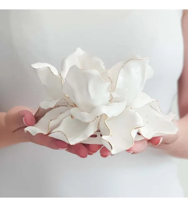 Unikalus dizainas: Šis židinys išsiskiria savo subtilia gėlės žiedo forma, kuri suteikia jam elegancijos ir rafinuotumo. Kiekvienas žiedlapis rankomis išpjaustytas iš aukščiausios kokybės porceliano, todėl židinys tampa ne tik funkciniu objektu, bet ir tikru meno kūriniu, puošiančiu jūsų namus.