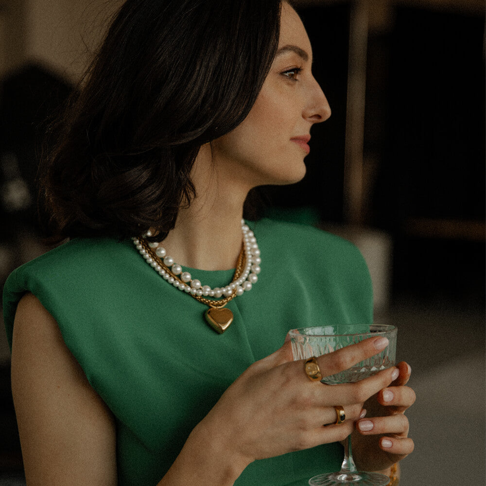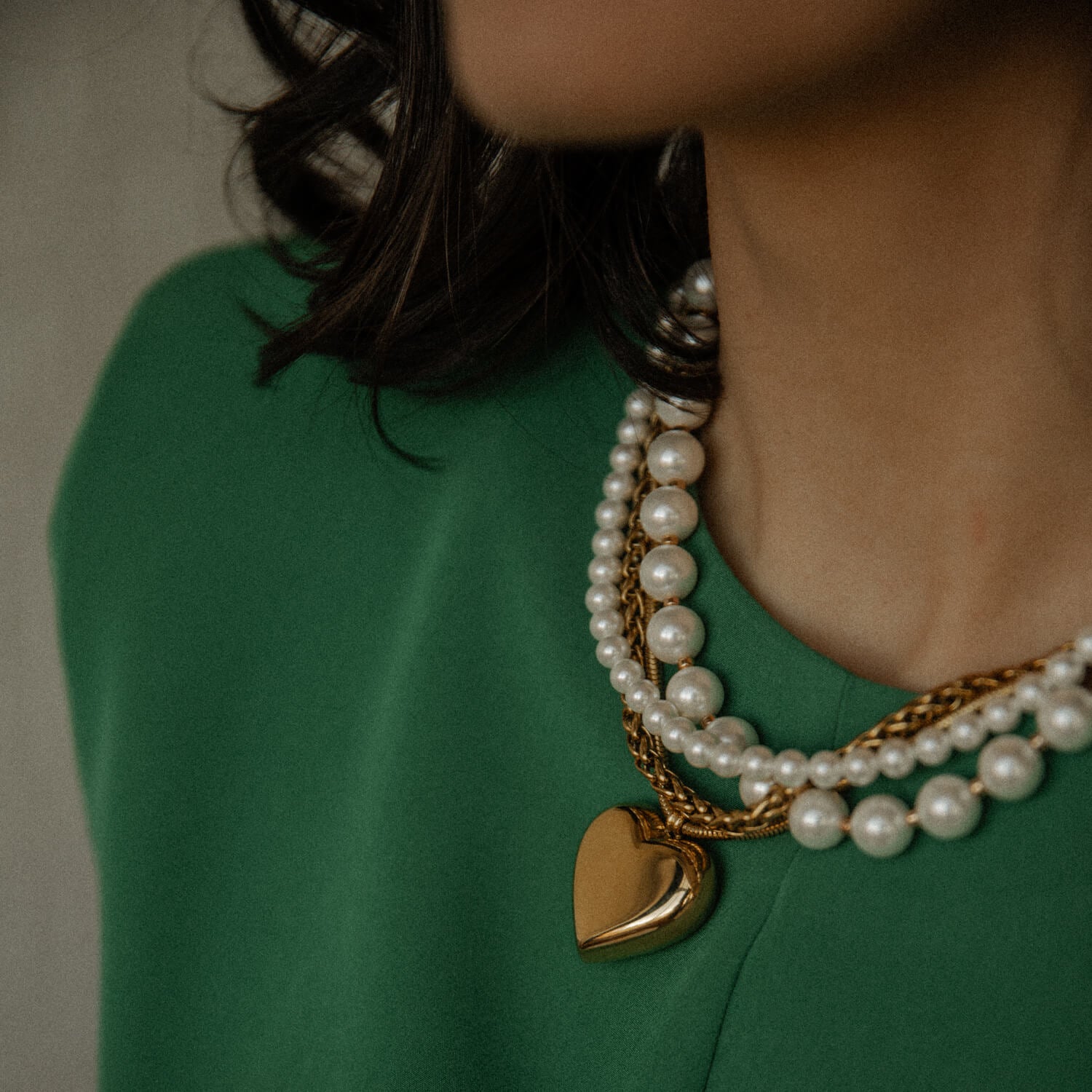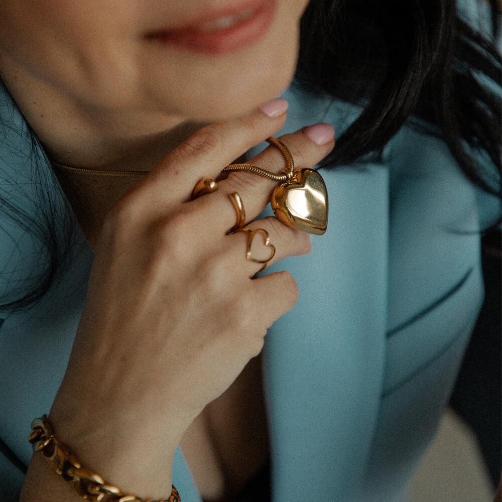 Aukso spalvos grandinėlė su dideliu širdies pakabuku.