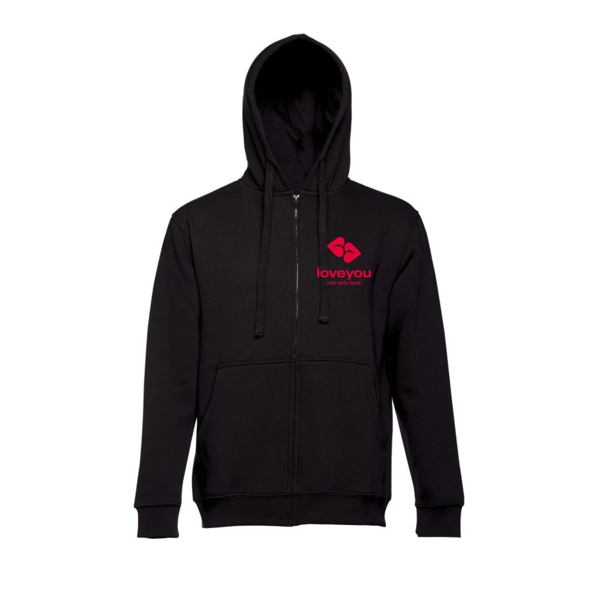 ILOVEYOU džemperis su užtrauktuku, kapišonu, kišenėmis ir logotipu