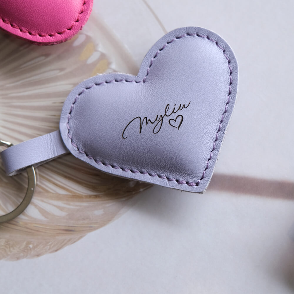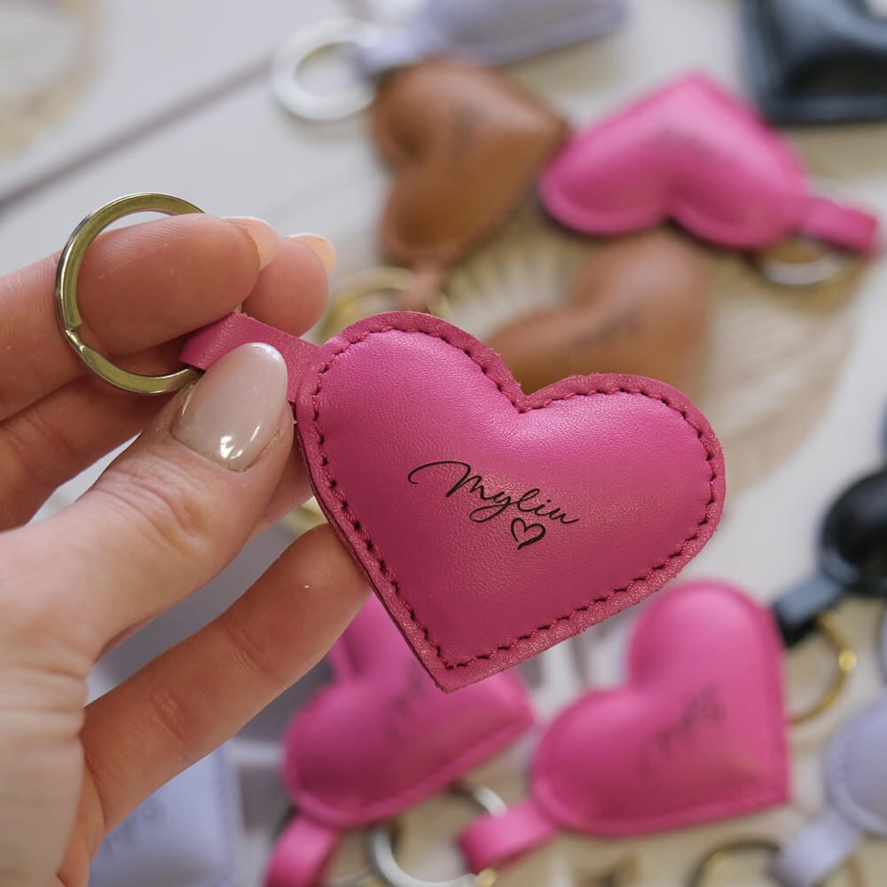 Natūralios odos raktų pakabukas širdutės formos su užrašu Myliu. Minkštas lyg pagalvėlė ir labai mielas. Raktų pakabuko spalva – ruda, rožinė arba alyvinė.