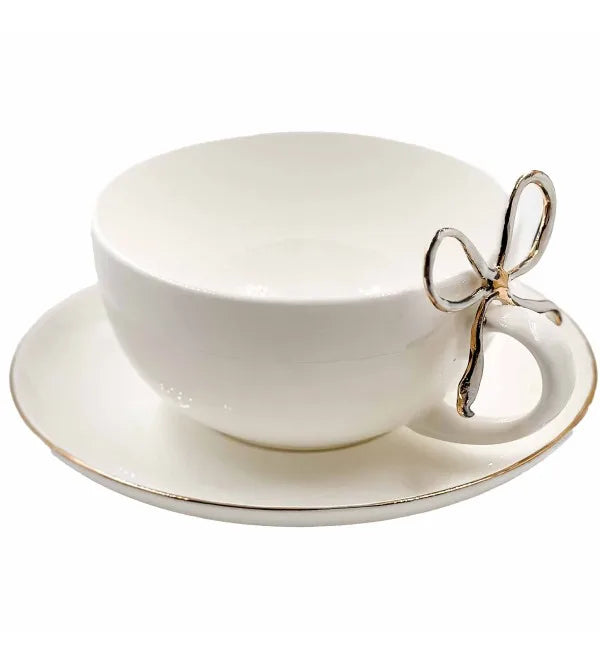 Porcelianinis puodelis su lėkštute. Subtilus auksinis dekoras, suteikia kiekvienam puodeliui išskirtinį žavesį. Puikus pasirinkimas tiems, kurie vertina eleganciją ir kokybę.