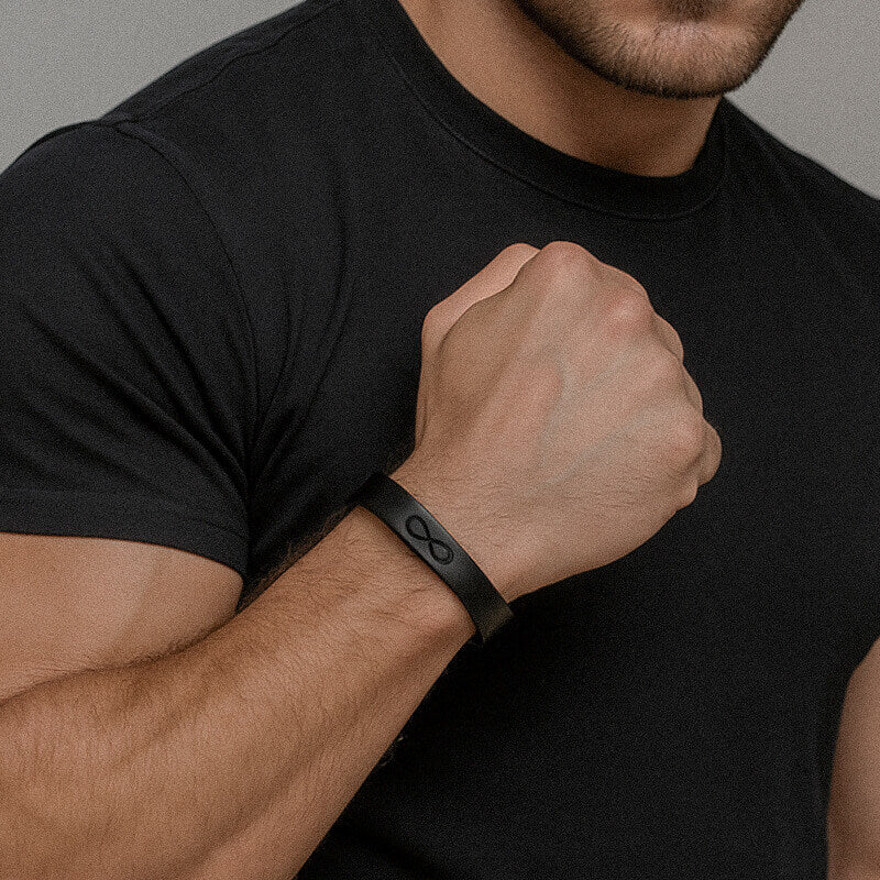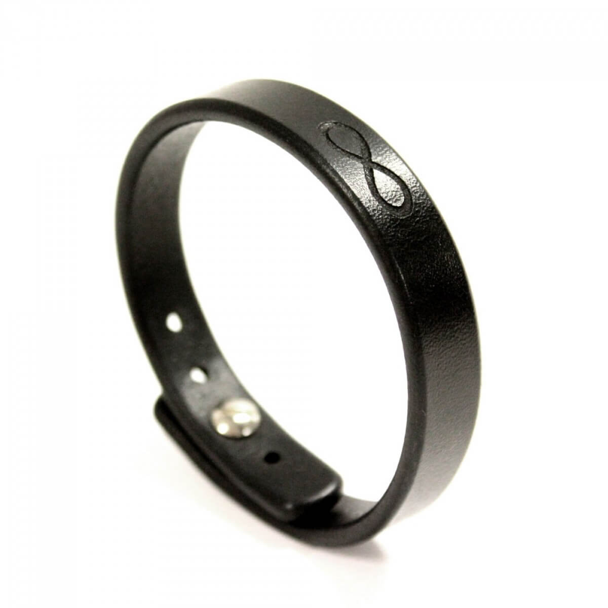 Itin kokybiškos juodos odos apyrankė su išgraviruotu begalybės ženklu.