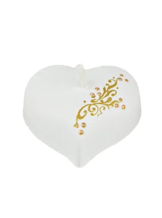 Balta žvakelė širdelė su auksiniu dekoru. Tobulas pasirinkimas šeimos židiniui. Rankų darbo, pagaminta iš sojų vaško.