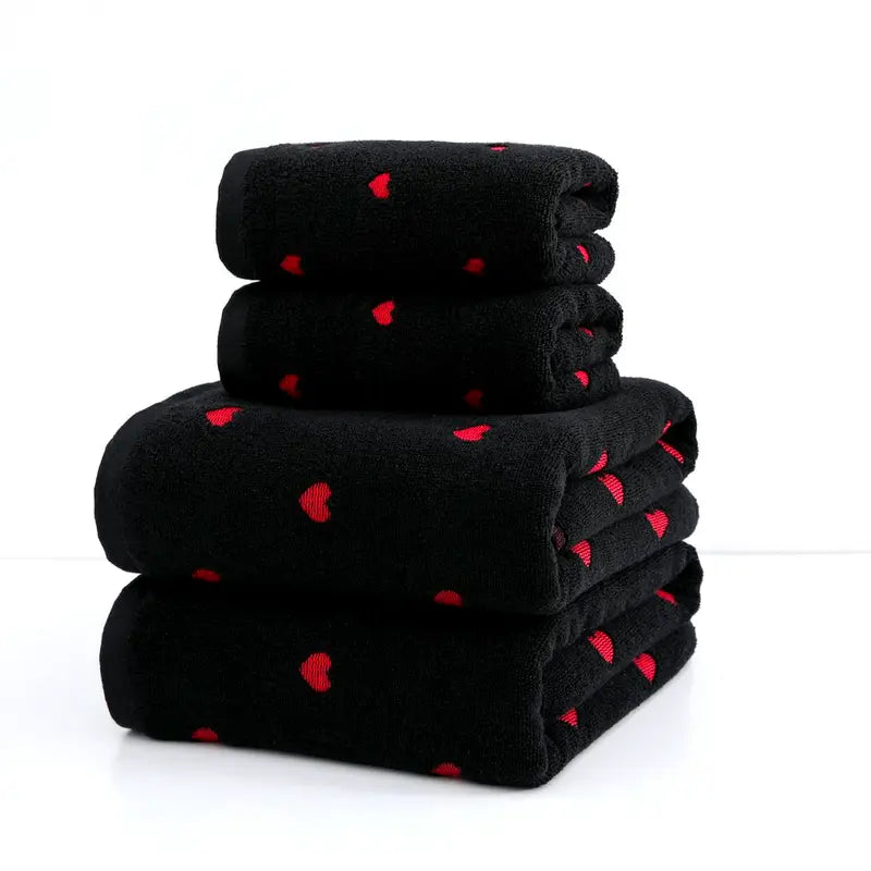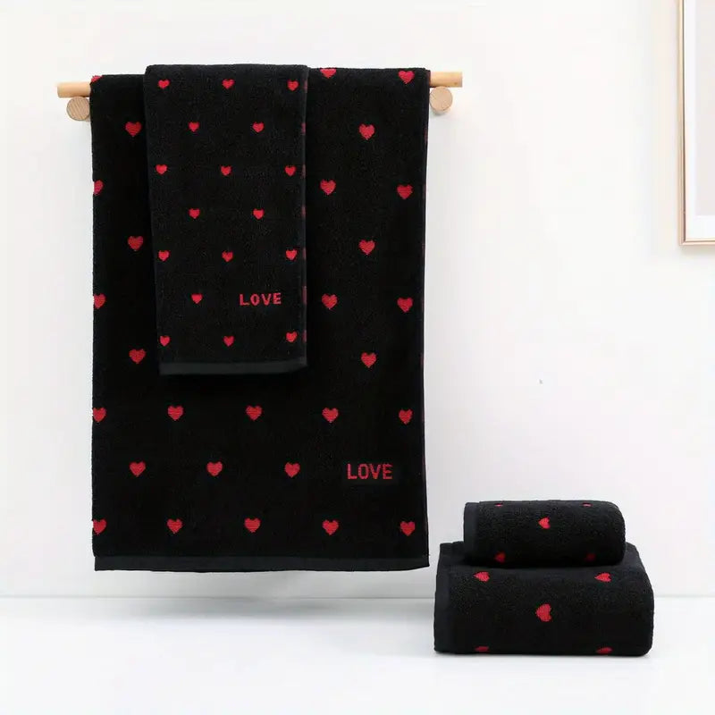 Набор из 4 хлопковых полотенец черного цвета с любовной тематикой
