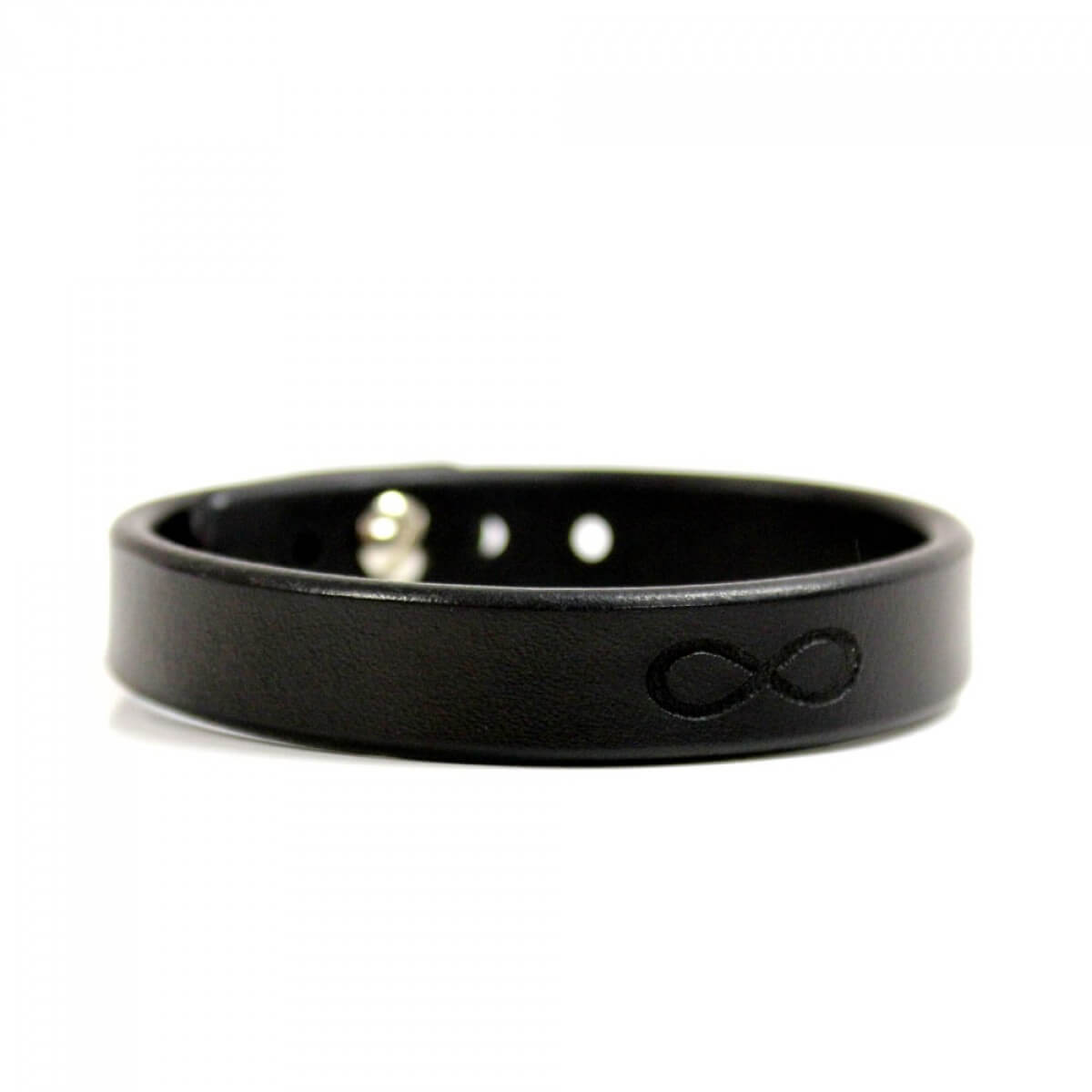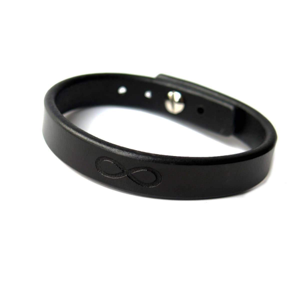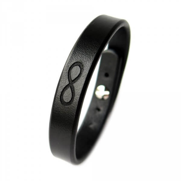 Itin kokybiškos juodos odos apyrankė su išgraviruotu begalybės ženklu.