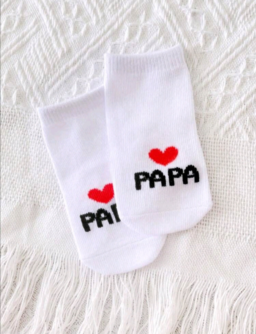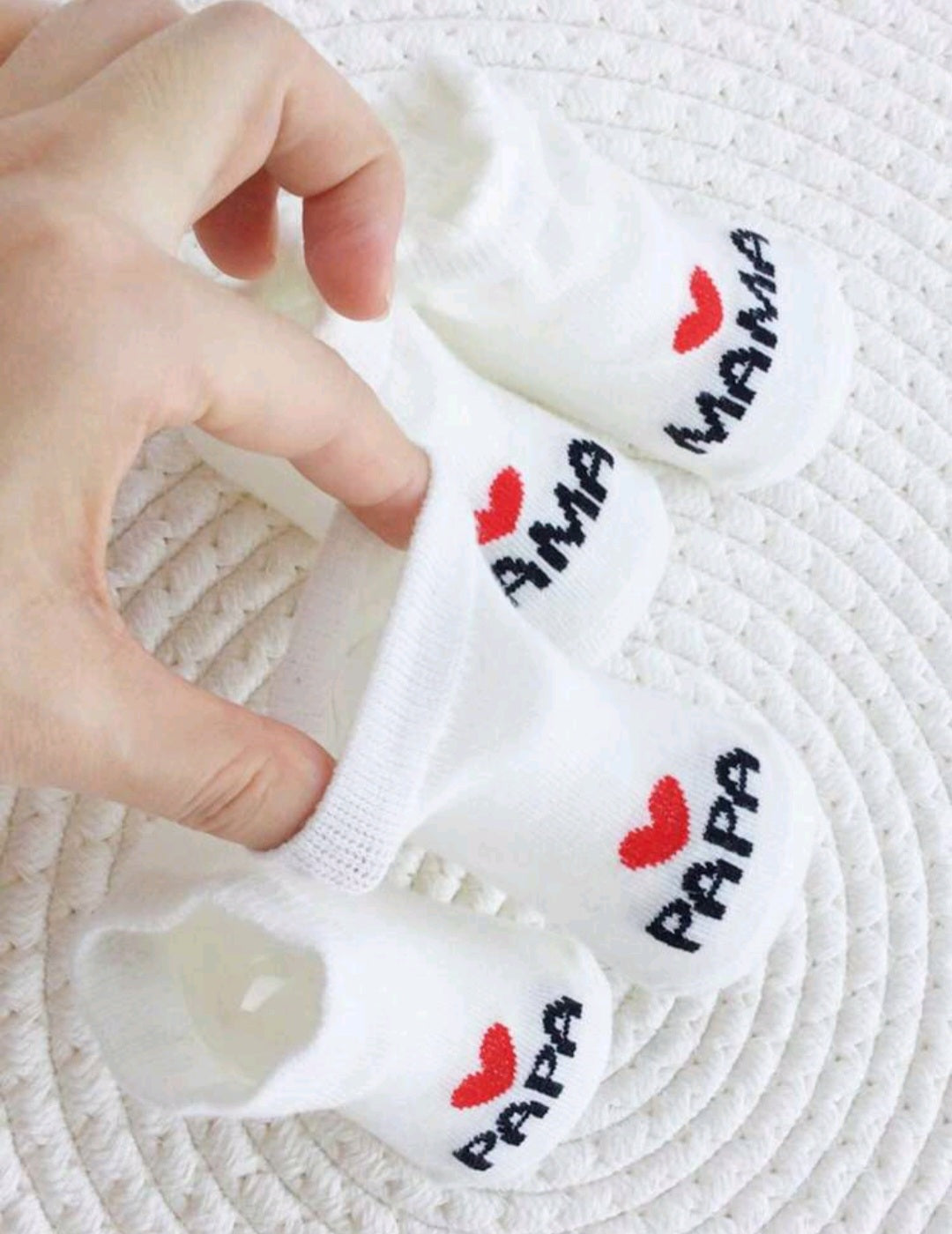 Эти очаровательные белые детские носочки с милыми надписями «Мама» и «Папа» и сердечками — отличный выбор для первых дней жизни вашего малыша. Они не только согреют вас, но и станут нежным проявлением любви, радуя как малыша, так и родителей.