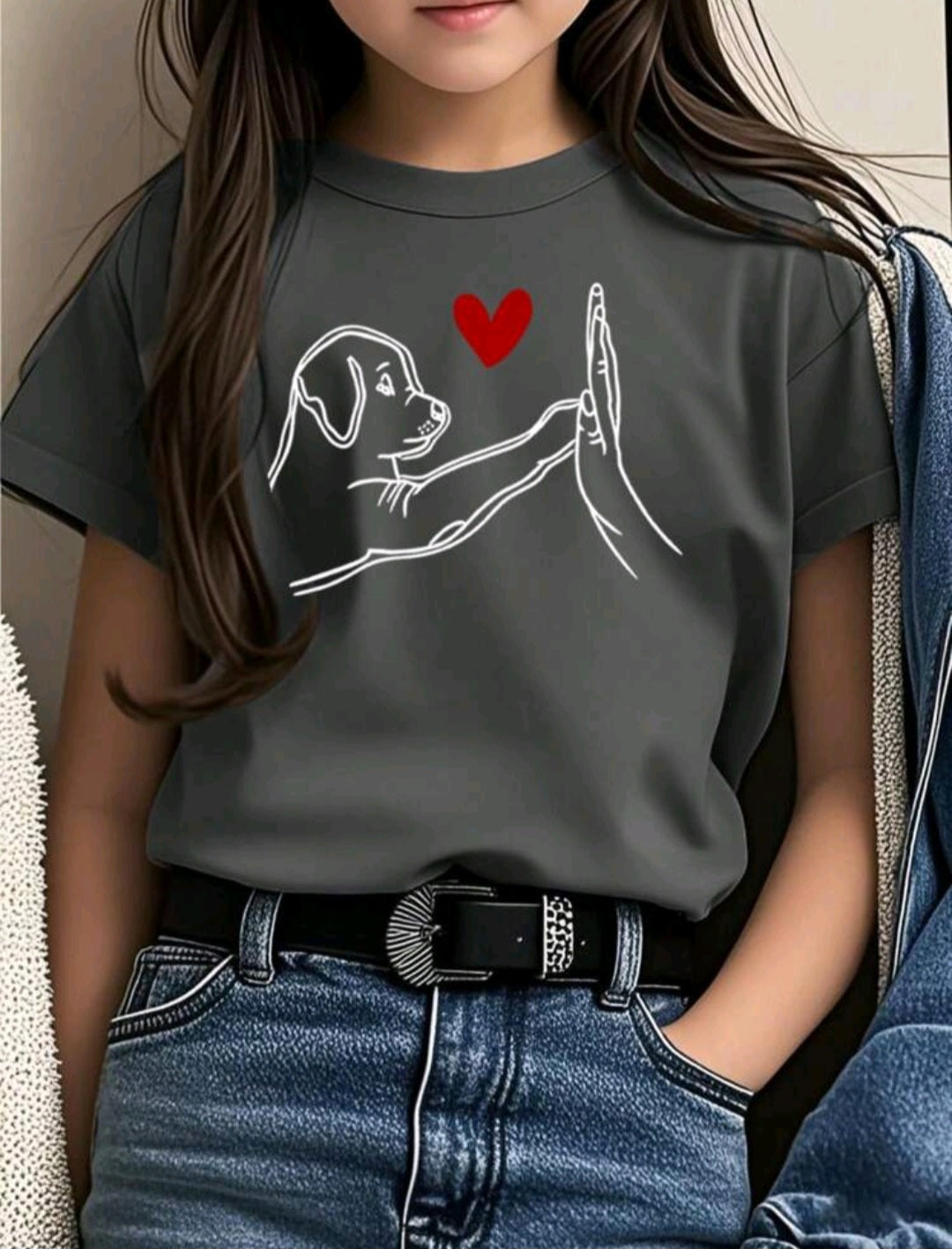Любовь к щенкам — это больше, чем просто хобби, это дружба на всю жизнь ! 🐾 Эти очаровательные футболки для девочек — идеальный выбор для каждой настоящей любительницы щенков . Украшенные милым щенком, передающим привет человеческой руке, и сердечком, они наполнены нежностью и преданностью! 🤝❤️