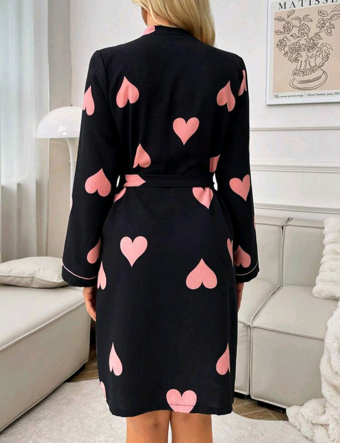 Ищете элегантный и в то же время игривый халат на лето? Этот чёрный женский халат с узором в виде розовых сердечек создан для тех, кто ценит стиль, комфорт и женственность. Лёгкая и прохладная ткань подарит вам ощущение свежести даже в самые жаркие дни.