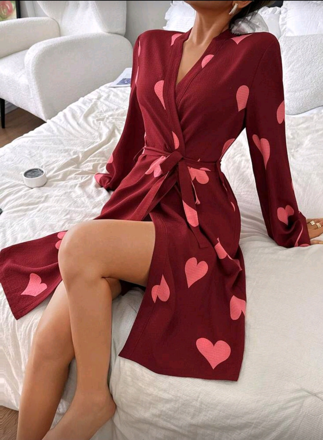 Женский тонкий халат с розовыми сердечками — стильный и освежающий выбор.