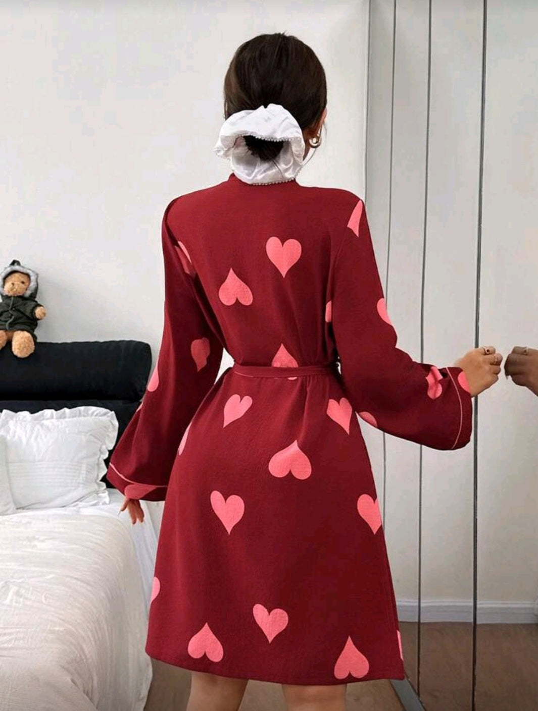 Женский тонкий халат с розовыми сердечками