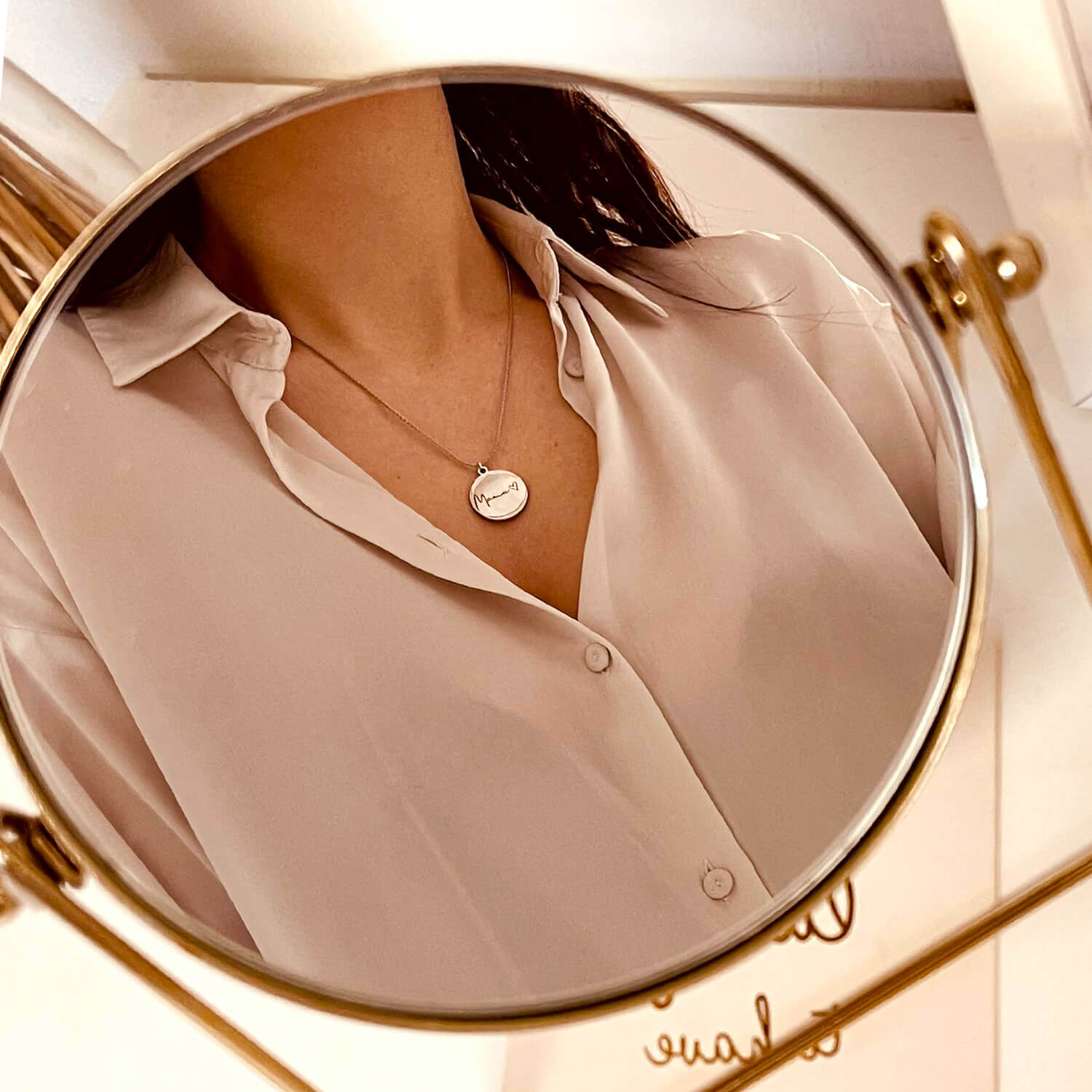 Pakabukas su grandinėle, pagamintas iš aukštos kokybės sidabro spalvos nerūdijančio plieno.