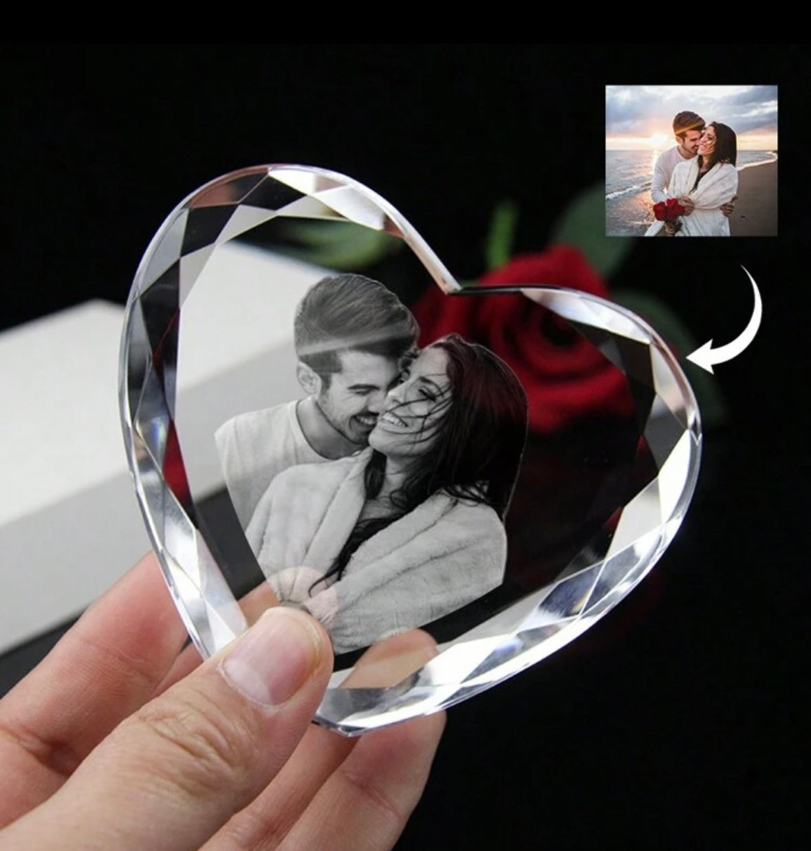 Įamžinkite brangiausias akimirkas elegantiškoje krištolinėje širdyje. Ši iš aukštos kokybės skaidraus kristalo pagaminta dekoracija gali būti personalizuota Jūsų pasirinkta nuotrauka, kuri preciziškai išgraviruojama kristalo viduje. Tai išskirtinė ir jausminga dovana, kuri ilgus metus primins ypatingas emocijas.