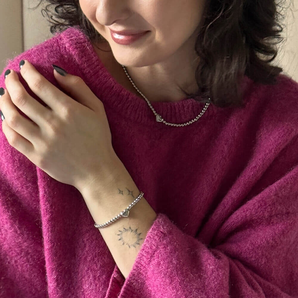 Nerūdijančio plieno karoliukų vėrinys su širdele.